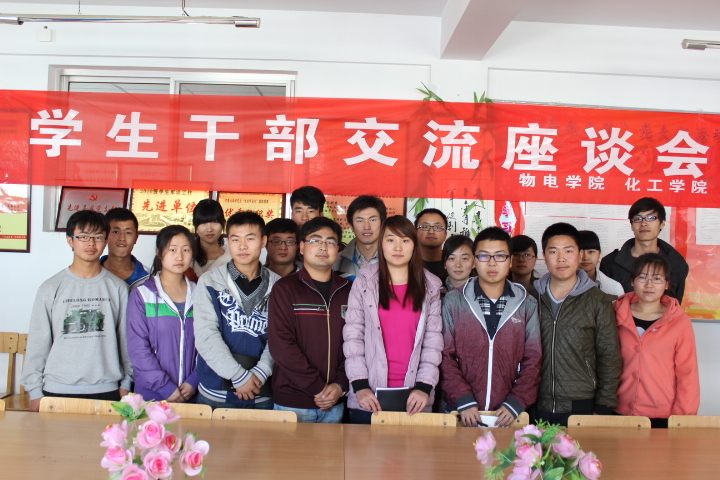 这次会议,将会促进我们学生干部在工作中的积极性,在吸取了交流经验后,我们将会做得更好!会议顺利进行完毕后,与会人员一起合影,作为宾上客,我们也不忘诚邀化工学院的学生干部下次到我们物电学院进行工作、学习上的交流。