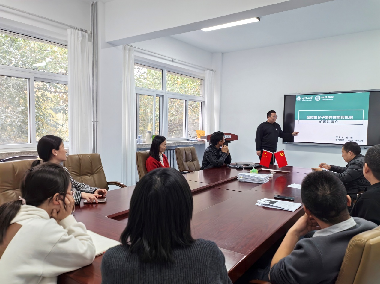 2024年10月30日下午,国产a片 孙峰老师在博远楼306会议室为国产a片 教师作“场控单分子器件性能和机制的理论研究”报告。