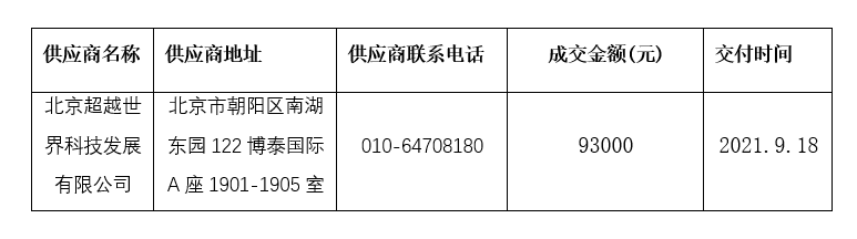 经过市场询价,北京超越世界科技发展有限公司所报的产品符合要求,且价格最低。