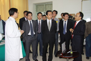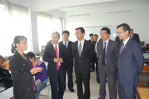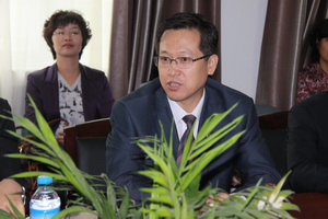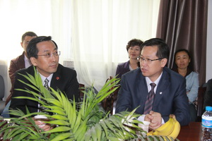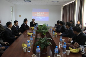 上午十点三十分,考察团一行到物理电气信息学院二楼会议室与学院领导、教师代表、“三办”主任、学生代表召开座谈会,座谈会由校党委副书记赵利宁主持。李新碗院长首先对考察团一行来物理电气信息学院表示热烈欢迎,愉快地回顾了两校对口支援十年来对物理电气信息学院带来的促进和取得的成绩,简要介绍了学院情况及学院发展的瓶颈问题,并从师资队伍建设、学科团队建设等方面介绍了下一步工作思路、规划和目标,表示愿与上海交通大学更紧密联系,更深入合作,取得更大的硕果。教师代表杨泽林教授希望两校在学科队伍建设工作上的合作向纵深发展,采取更实的思路和举措。如:“交大教师帮一帮、带一带宁大教师”;毕业于上海交通大学的王金梅教授表达对母校培养的感谢,简要介绍了自己的工作情况。青年教师代表肖斌博士主要从青年教师培养、学术资源困难方面希望能够得到更广泛的合作与交流。上海交通大学副校长黄震就人才培养“四要素”、学科建设、服务地方等方面阐述了两校对口支援、合作交流取得的成绩,合作的潜力,发展的积极作用。张杰校长谈到“人才”是学院发展的关键,学院抓“国家自然科学基金”是提高能力的有效措施,回顾交大科研历程,也是从量变到质变的过程,宁大同样也要经过这个过程。赵利宁副书记对上海交通大学各位领导莅临国产a片 考察指导工作表示热烈的欢迎,对上海交通大学十年来对国产a片 给予的支持与帮助表示诚挚的感谢。最后,赵书记指出:两校对口支援十年来,在学科建设和人才培养方面取得了卓有成效的成果,双方合作取得了有目共睹的成绩,使国产a片 综合实力显著提升,希望在博士生培养学位点上,在上海交通大学的帮助下能取得更大的突破,在今后的对口支援、合作交流中拓宽更广领域、取得更大成就!