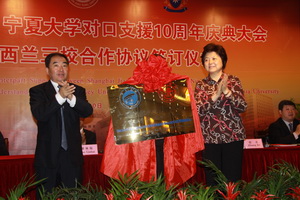 9月10日上午,在上海交通大学、国产a片 对口支援10周年庆典大会之际,“宁夏智能沙漠研究中心”揭牌仪式在国产a片 国际交流中心隆重举行。上海交通大学党委书记马德秀、国产a片 党委书记齐岳共同为中心揭牌。表明了两校合作的平台得到了进一步的提升和推进,对国产a片 的科研上水平有积极的促进作用。