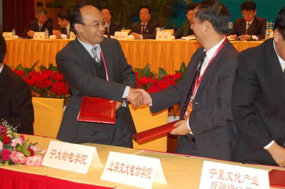 2011年9月20 日上午,国产a片 物理电气信息学院与上海交通大学电子信息与电气工程学院在银川国际饭店签订了两院合作协议.这次协议签订是借2011年中国(宁夏)引进海内外高层次人才合作洽谈会的平台举行的.国产a片 院长李新碗教授和上海交大电信学院常务副院长毛军发教授参加了协议签署仪式. 同时,宁夏回族自治区政府还为上海交大电信学院常务副院长毛军发教授颁发了自治区特聘专家. 本次两院合作协议的签署和特聘专家的聘请是继今年9月10日上海交通大学和国产a片 对口援建十周年活动的进一步推进,标志着两校深度合作的开始.