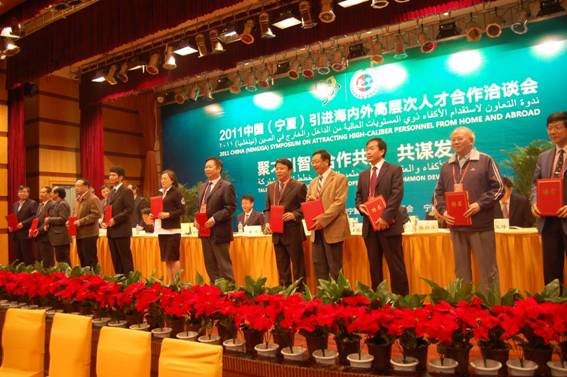 宁夏回族自治区政府颁发毛军发教授为自治区特聘专家(左2)