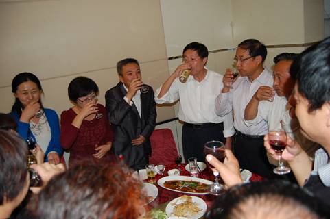 会后,合影留念。晚上6:30,在轻松欢快的音乐声中,全体校友步入学校为返校校友准备的晚宴。