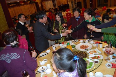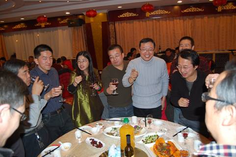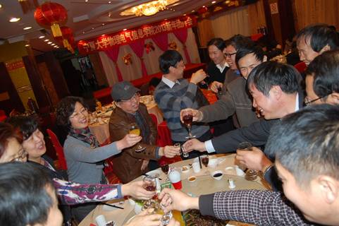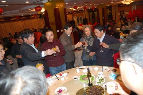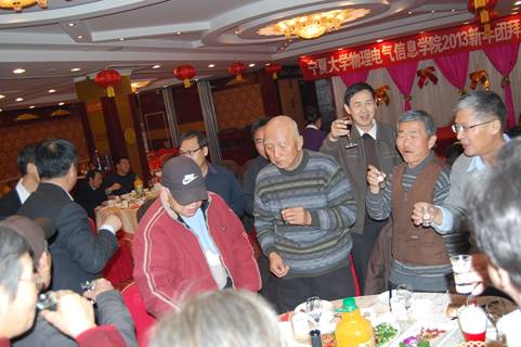 晚上由学院组织,邀请学院已退休教职工和在职教职工参与晚宴,晚宴现场由四个系主任和两个中心主任分三次抽取6名教职工幸运奖。晚宴前,院党总支书记郭振才发表了热情洋溢的祝辞,并转达何建国校长、李新碗院长对大家新年的祝福,祝大家新年愉快!身体健康!阖家欢乐!