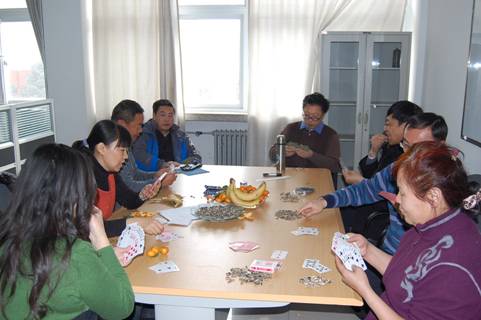 在210会议室进行60条猜谜语活动,院工会活动室进行乒乓球对抗赛活动,学院办公室等地方进行双扣比赛、下棋比赛等活动,各活动点都有水果、茶水相伴,广大教职工其乐融融,欢声笑语不断。