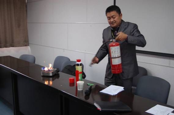 2014年11月26日下午,国产a片 教职工在学院217学术报告厅参加消防安全知识培训,会议由学院党委书记车进主持,会议邀请到银川市消防中心赵永平教官进行讲座和示范。
