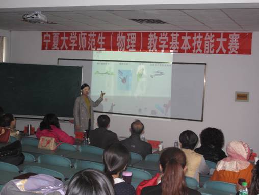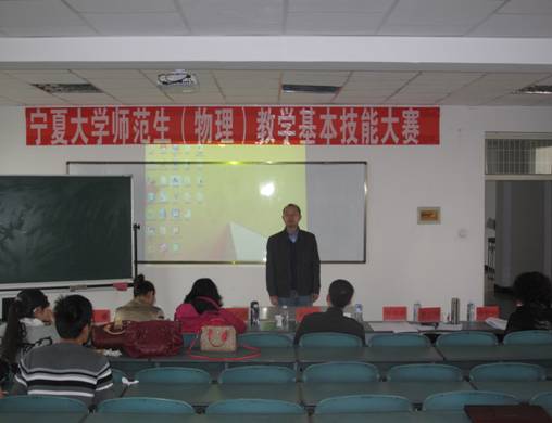 大赛从物电学院2011级和2012级的100多名物理学(师范)专业本科生中,选取了18名学生参加决赛。竞赛评委主要由物电学院从事师范教育工作的资深教授及授课经验丰富的专业教师组成(任克亮、张轶炳、杨涛、郝睿、朱巧萍、秦君琴)。此外,大赛组委会还特别聘请了长期从事师范生实习指导工作的专家(国产a片 教务处实习科的李志涛老师)和校外专家(银川市十六中教导处主任,高级教师刘建志老师)共同形成评审组。根据全国师范生教学技能大赛要求,竞赛内容包括撰写教学设计,制作说课PPT,现场说课及讲课环节。竞赛要求每位学生讲课与说课环节共计15分钟,其中,讲课环节不得低于8分钟。