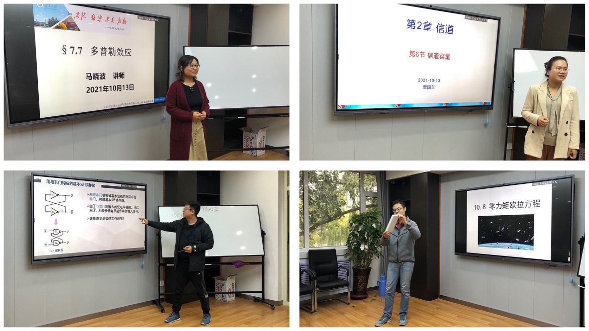 本次比赛共有来自物理系、信息工程系和电气工程与自动化系的8名青年教师参加,评委由学院教学指导委员会主任及委员构成。比赛分为现场讲课、评委打分及评委点评三个环节,重点考察青年教师的教学设计能力、授课基本功底及对教学方法、教学手段和教学理念的运用。