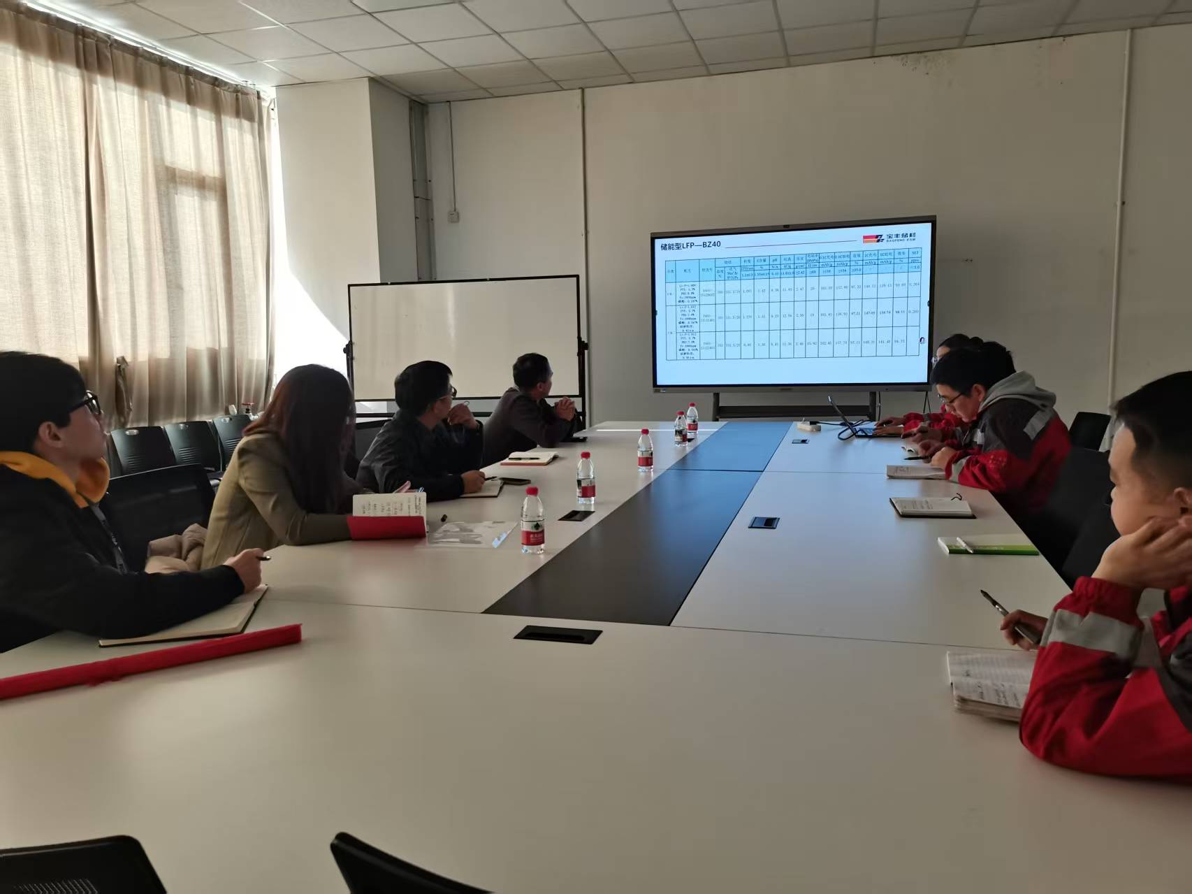 交流会上,公司总工程师李向南欢迎曹志杰一行到访,介绍了公司在磷酸铁锂正极材料领域的研发现状、技术优势与市场布局。他表示,公司亟需储能材料专业人才,期待与高校合作提升产品效益与核心竞争力,为毕业生提供就业实践平台。曹志杰介绍了学院在储能材料领域的学科优势、科研成果及人才培养情况,提出三点合作构想:共建科研平台联合攻关、探索“订单式”人才培养、联合申报项目加速成果转化。随后,双方技术人员围绕正极材料生产工艺、稳定性提升、能耗优化等难题深入研讨,达成初步共识。会后,在公司陆非部长陪同下,曹志杰一行参观了正极材料生产线,详细了解生产全流程及设备运行情况。陆部长讲解了关键工序与技术参数,双方就工艺优化进一步交换意见。