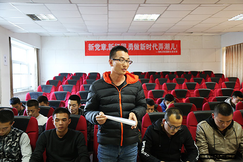 首先,全体成员起立,奏唱国歌。接着,支部成员围绕“新党章”依次发言,随后,支部书记聂义民老师要求支部成员要脚踏实地,不忘初心,充分起到模范带头作用。最后,支部成员集体观看了石泰峰书记来国产a片 宣讲党的十九大精神视频。