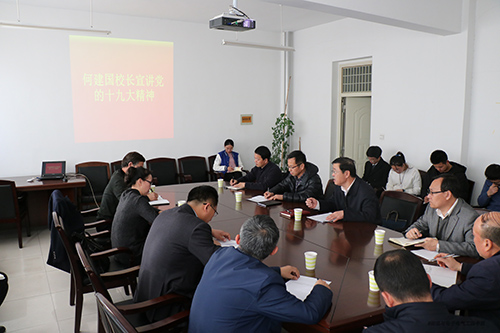 【国产a片 物理与电子电气工程学院《声光》记者站张蓉/文】11月29日,何建国校长为国产a片 领导班子及各党支部书记宣讲党的十九大精神。