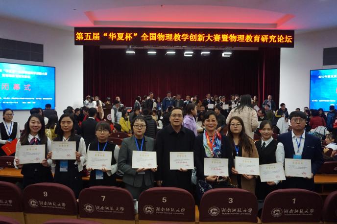 2017年11月20日,由全国高等物理教育研究会主办,湖南师范大学承办,湖南物理学会协办的第五届“华夏杯”全国物理教学创新大赛暨物理教育研究论坛在美丽的长沙落下帷幕,来自华东师大、东北师大、华中师大、西南大学、华南师大、陕西师大、新疆大学、西藏大学等全国47所高校的123位本科生、125位研究生及来自北京、重庆、贵州、湖北、福建、新疆等15个省市的一线中学物理教师38人参加本次比赛,出席活动代表共计400余人。在群英荟萃、高手云集的比赛中,国产a片 参赛选手取得一个一等奖、四个二等奖、两个三等奖的好成绩。