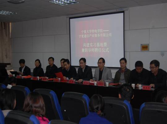 2013年11月27日下午,在宁大物电学院217学术报告厅举行国产a片 物理电气信息学院与宁夏通信产业服务有限公司共建实习基地暨聘任专业学位硕士生导师签字仪式,会议由物电学院任克亮副院长主持,参加会议的领导有:物电...
