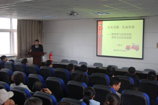 2014年4月23日下午,国产a片 全体教职工在学院217学术报告厅参加消防安全知识培训,会议由学院党委书记车进主持,会议邀请学校保卫处丁维凡、齐周济进行讲座和示范。