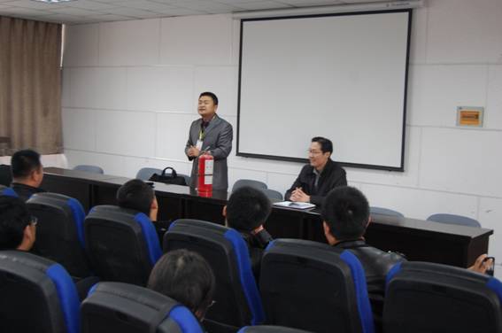 2014年11月26日下午,国产a片 教职工在学院217学术报告厅参加消防安全知识培训,会议由学院党委书记车进主持,会议邀请到银川市消防中心赵永平教官进行讲座和示范。